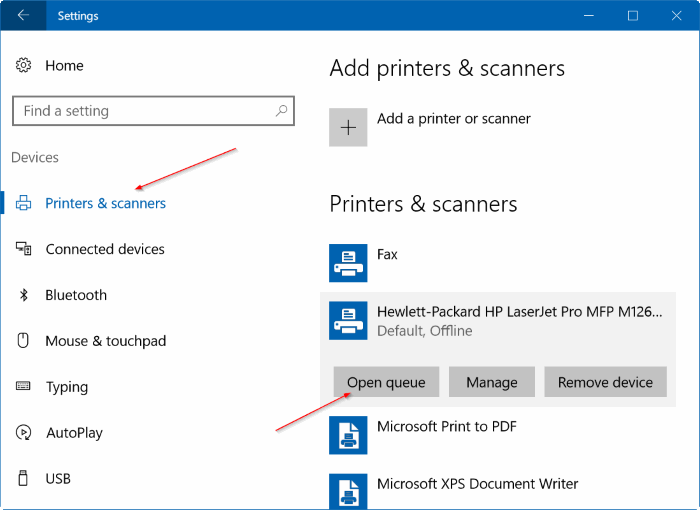 Settings > Printers & Scanners