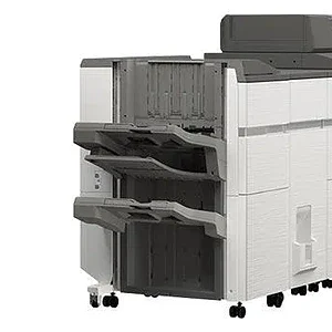 Toàn bộ khung máy được thiết kế theo tiêu chuẩn công nghiệp, đảm bảo khả năng vận hành liên tục mà không bị giảm hiệu suất. Kích thước của máy đạt 663 x 763 x 1.240 mm, phù hợp với các không gian phòng ban lớn hoặc khu vực in ấn trung tâm của doanh nghiệp.